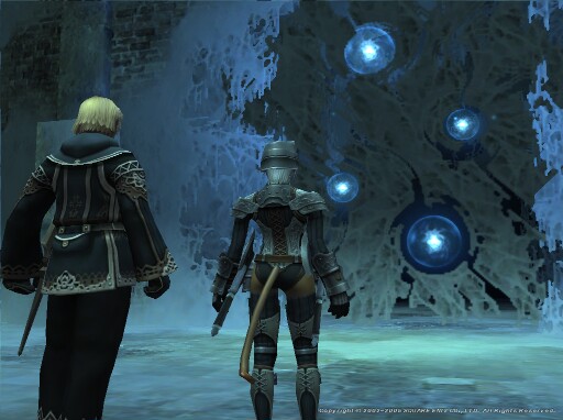 8-27-05: Xilldon and Mere eagerly await their entrance into the Promyvion fight. These were the days before we were assured victory using the anima strategy. ...Uphill both ways, I tell ya.